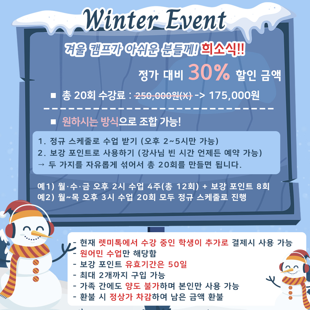 * 이벤트 수업 시작 시, 남은 정규 수업이 적어도