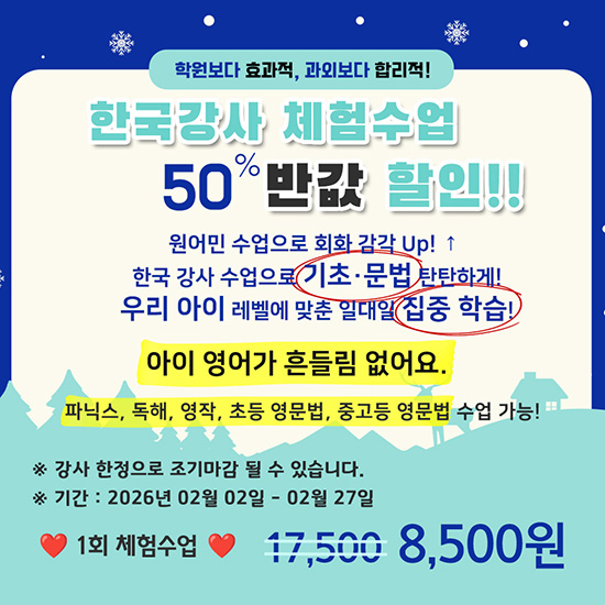 수업에 집중하며 원어민 선생님과의 거부감 없이 잘 할 수 있을까? 걱정은 No~